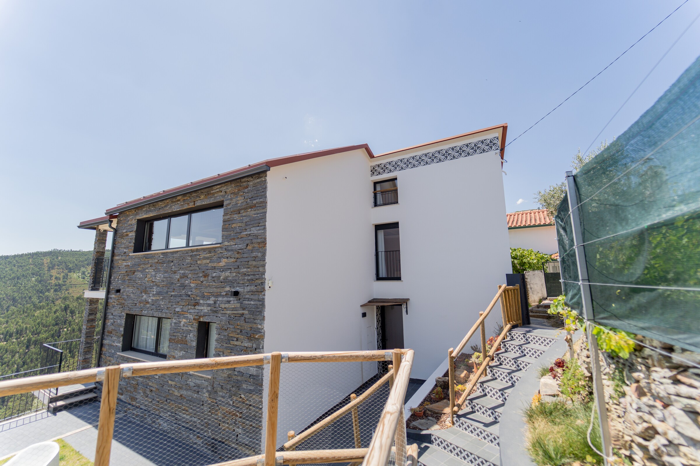 A paisagem serrana está presente tanto no exterior como a partir do interior, confortável e acolhedor, com janelas rasgadas para a serra e sobre o rio.