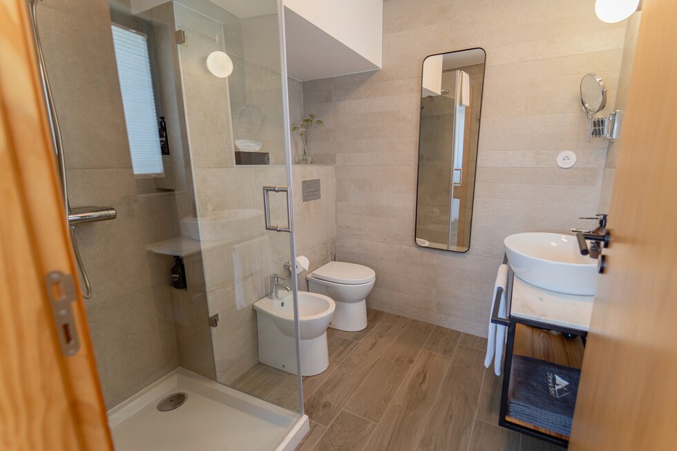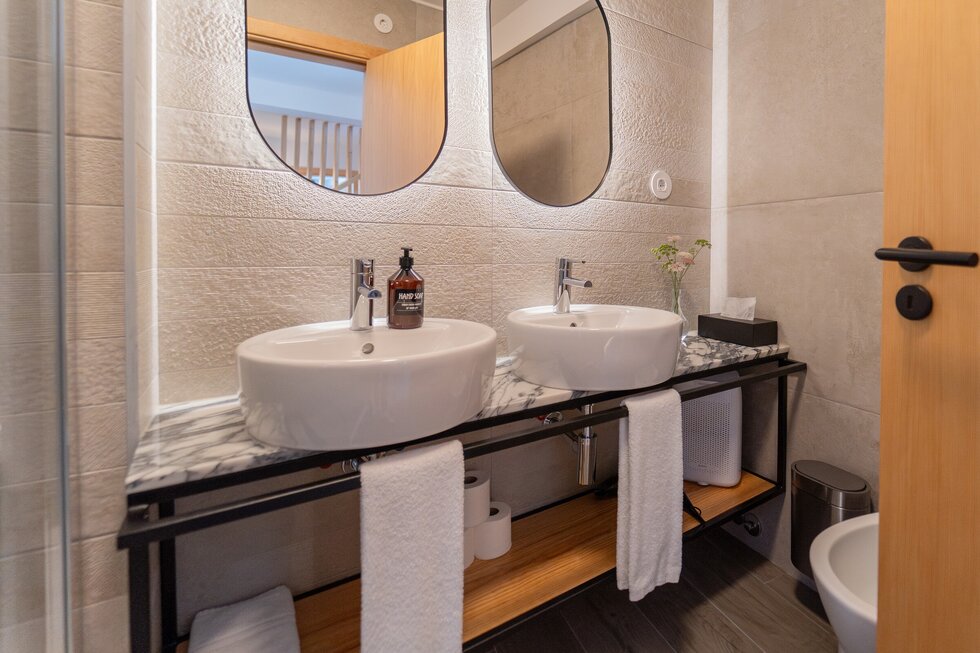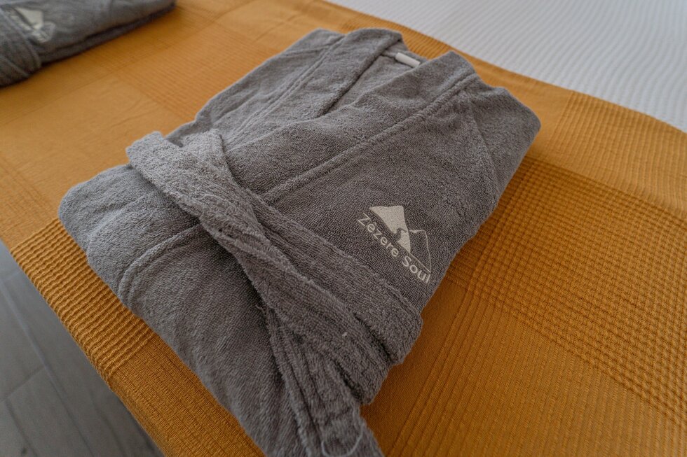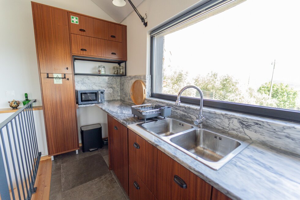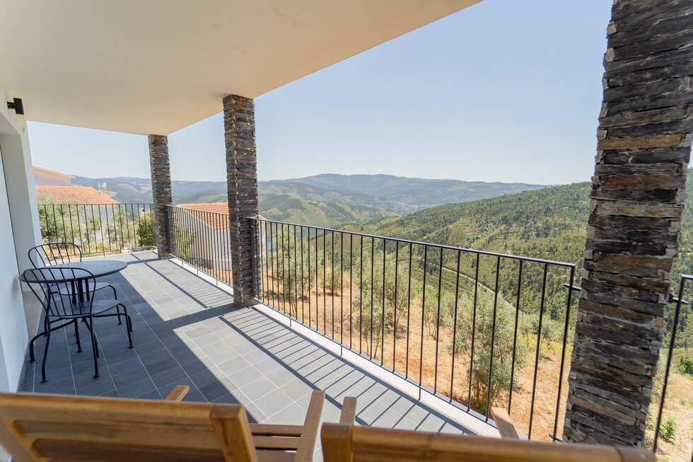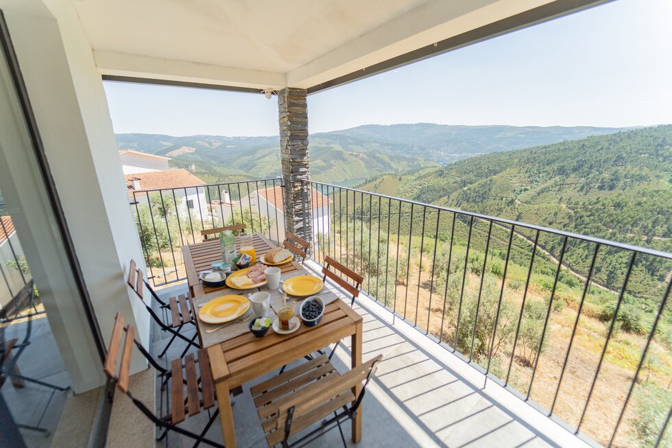 A casa é nova, mas com a memória dos nossos antepassados impressa em cada detalhe. O calor da salamandra com o forno para assar as castanhas no inverno é como em abraço dos nossos avós. O apontamento dos barrotes nus com o sobrado de madeira, o ferro simples e despojado, e por fim o xisto, são a alma desta casa.
