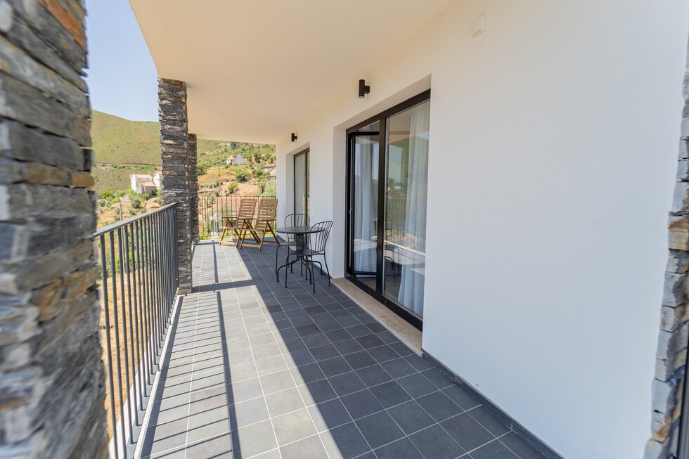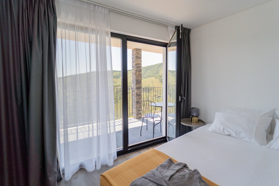 A paisagem serrana está presente tanto no exterior como a partir do interior, confortável e acolhedor, com janelas rasgadas para a serra e sobre o rio.