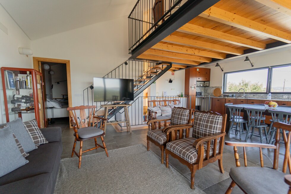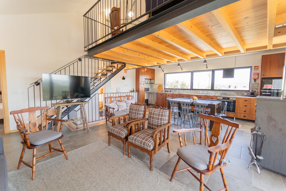 - 1 suite; 2 quartos; 1 WC comum; Sala ampla com cozinha, zona de refeições e zona de estar; Mezzanine com 2ª zona de estar. Varandas com equipamento de exterior e zona de refeições.