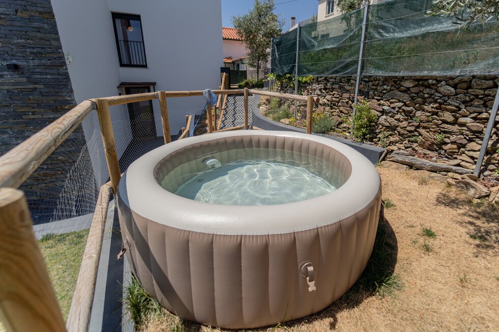 Espera por si um jardim exterior que permite usufruir da paisagem, da brisa, das estrelas, do calor ou até do frio dentro de um jacuzzi aquecido.