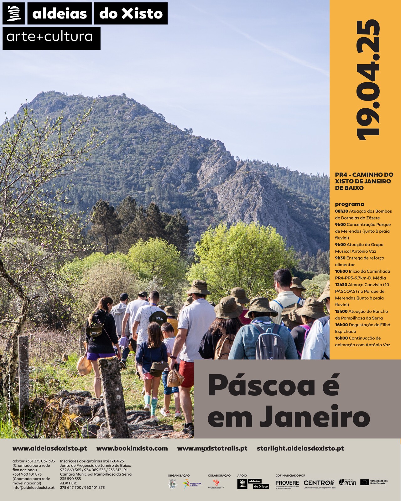 Prepare-se para um dia repleto de energia, natureza e boa disposição! No dia 19 de abril, o emblemático convívio “A Páscoa é em Janeiro” regressa a Janeiro de Baixo e promete voltar a encher a aldeia de alegria, reencontros e memórias felizes.