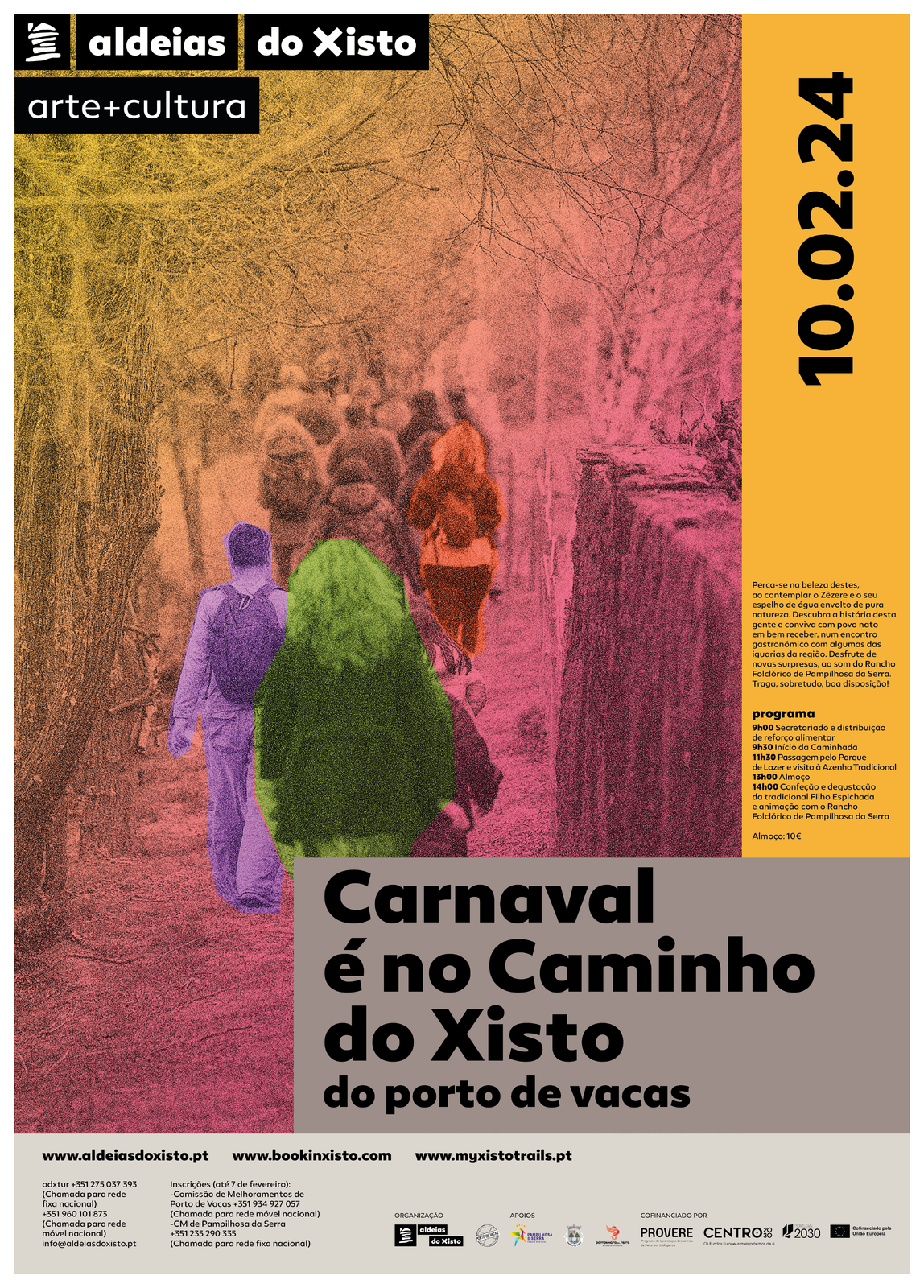 *A participação na caminhada e respetivo reforço, no almoço e nas restantes atividades possuem um custo de 10€ por adulto, 5€ para crianças dos 5 aos 9 anos e gratuito para crianças até aos 4 anos. O pagamento efetua-se no local da concentração.