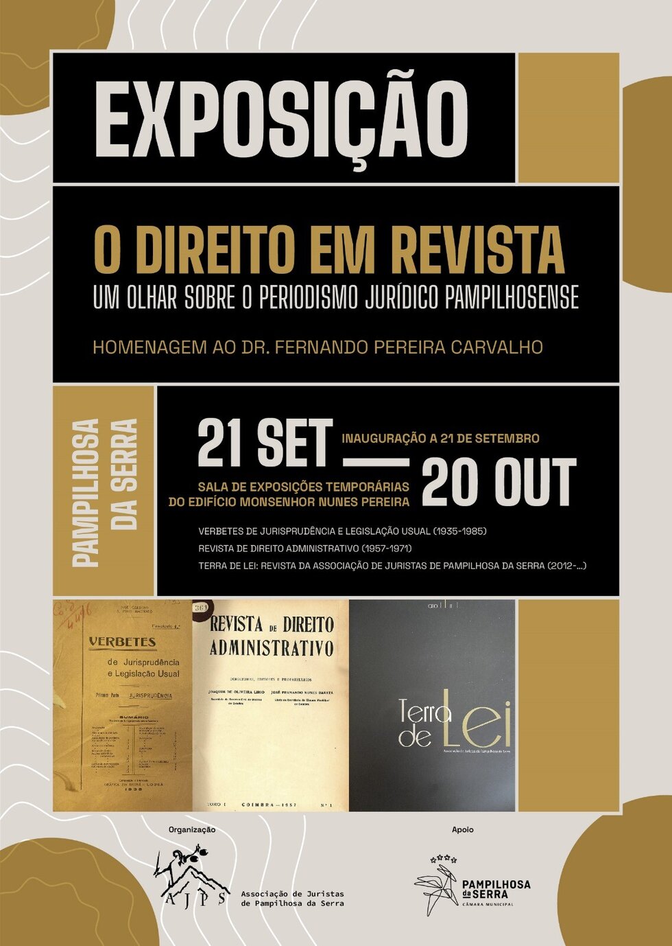 16:30 – Inauguração da exposição “O Direito em Revista: um olhar sobre o periodismo jurídico pampilhosense”