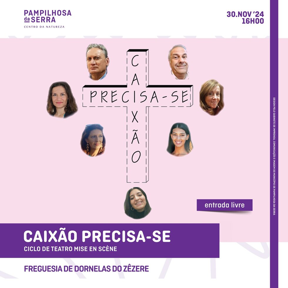 O próximo destino do ciclo de teatro Mise en Scène é a Freguesia de Dornelas do Zêzere. No dia 30 de novembro, pelas 16h00, a comédia “Caixão Precisa-se” sobe a palco no edifício da Junta de Freguesia.