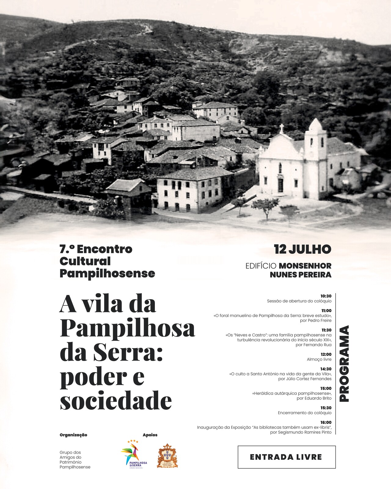 No próximo dia 12 de julho, o Edifício Monsenhor Nunes Pereira será palco do 7.º Encontro Cultural Pampilhosense, sob o tema “A vila da Pampilhosa da Serra: poder e sociedade”.