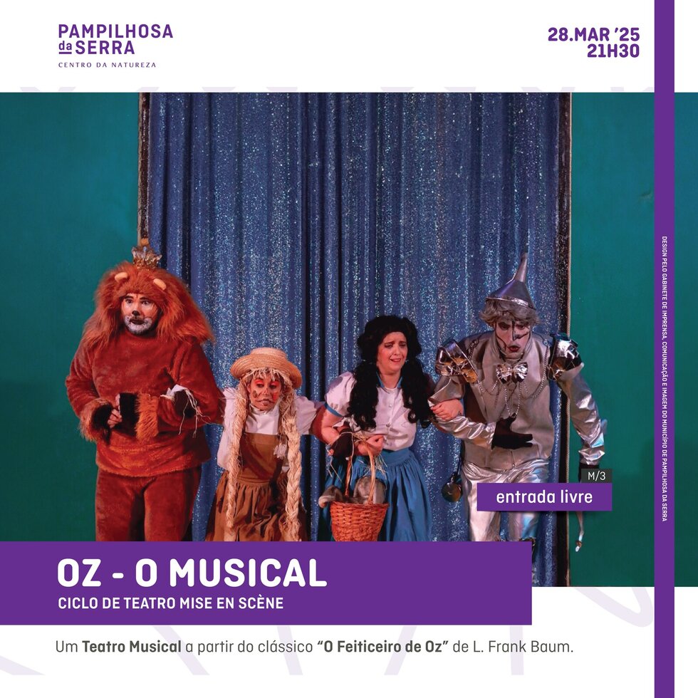 No dia 28 de março (sexta-feira), pelas 21h30, reúna a família e venha ver e viver “além do arco-íris”, no teatro musical inspirado no clássico “O Feiticeiro de OZ”, do autor Lyman Frank Baum.