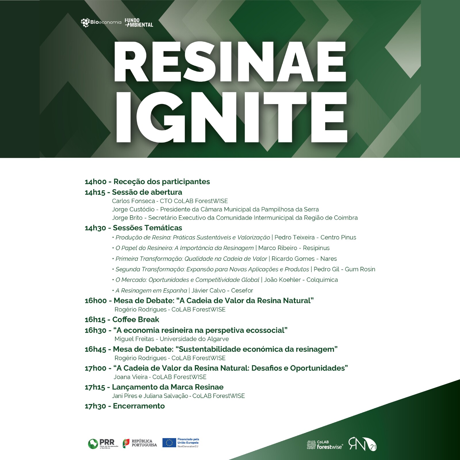 O “Resinae Ignite" é promovido pelo Projeto Integrado RN21, liderado pelo CoLAB ForestWISE. O RN21 é um consórcio que reúne toda a cadeia de valor da resina natural em Portugal. Este projeto aposta na modernização e revitalização do setor, valorizando a resina como um produto ecológico com vasto potencial de aplicação no mercado global.