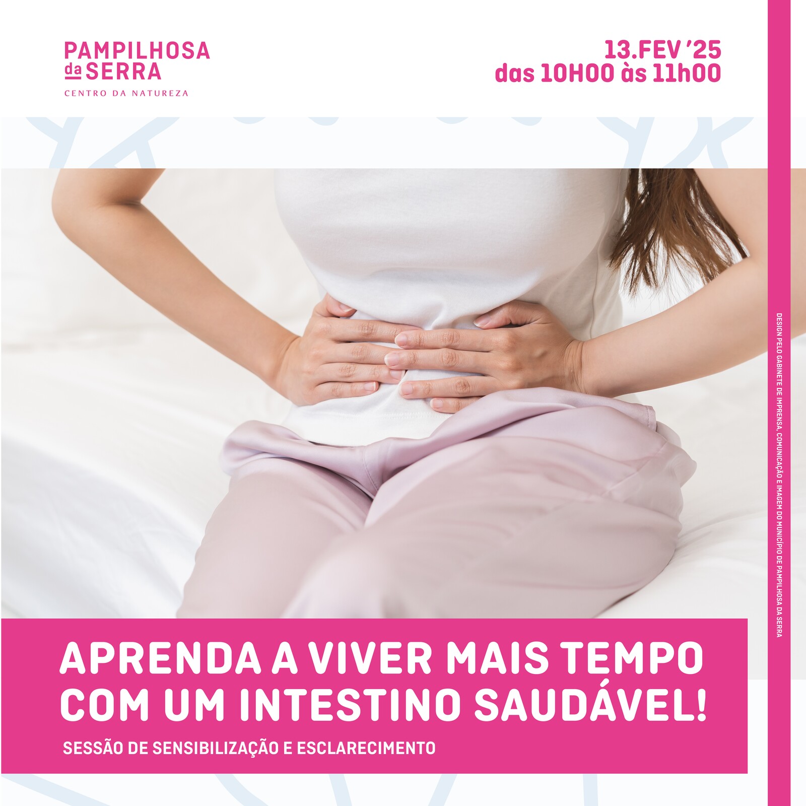 Se quiser “aprender a viver mais tempo com um intestino saudável”, participe na sessão de sensibilização e esclarecimento que se realiza na próxima quinta-feira, dia 13 de fevereiro, pelas 10h00, no Auditório da Junta de Freguesia de Pampilhosa da Serra.