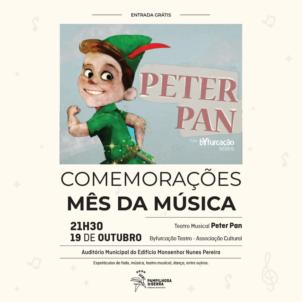 No próximo sábado (19 de outubro), pelas 21h30, o Musical Peter Pan vai transformar o Auditório Municipal num pequeno mundo de aventura, magia, emoção e muito ritmo.