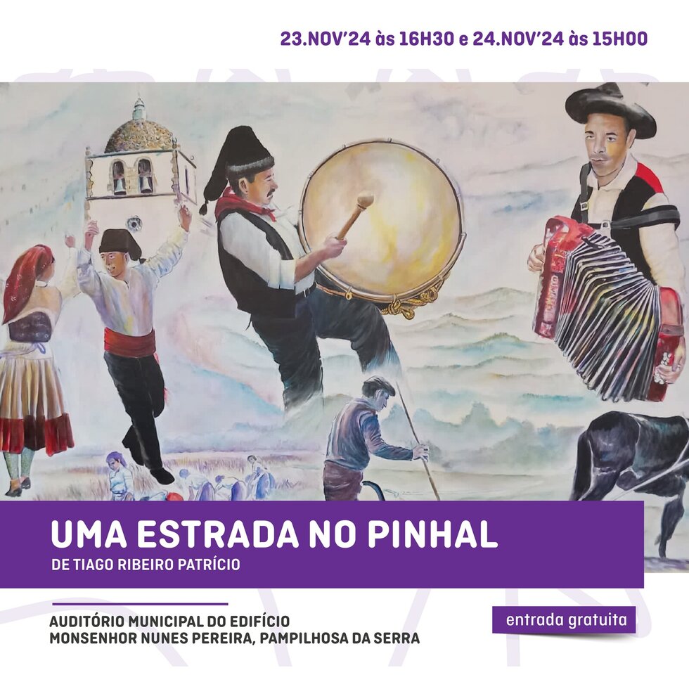 Nos dias 23 (16h30) e 24 (15h00) de novembro venha ao Auditório Municipal assistir ao teatro “Uma Estrada no Pinhal”, com intérpretes da comunidade de Pedrógão Grande!