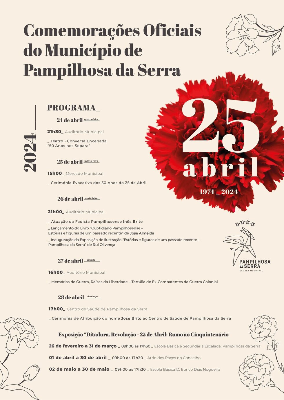 O Município de Pampilhosa da Serra irá comemorar o 50.º aniversário do 25 de abril, uma data que marcou a história de Portugal e de Pampilhosa da Serra em particular, com um conjunto de atividades:
