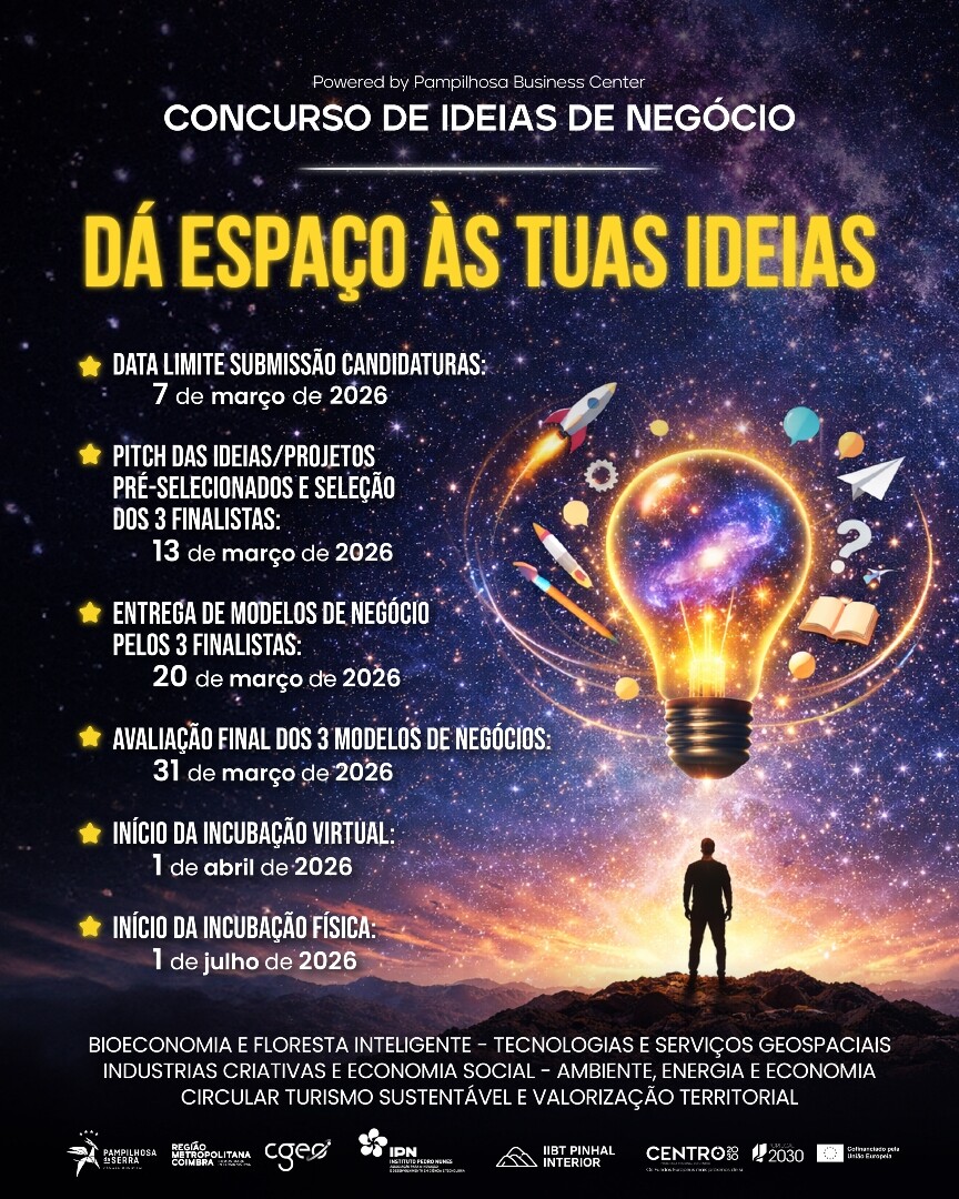 A Câmara Municipal da Pampilhosa da Serra e o Instituto Pedro Nunes (IPN), encontram-se a dinamizar o Concurso de Ideias de Negócio – “Dá Espaço às Tuas Ideias”, uma iniciativa que visa impulsionar o empreendedorismo, a inovação e a criação de valor no território, no âmbito da fase de lançamento do Pampilhosa Business Center (PBC).