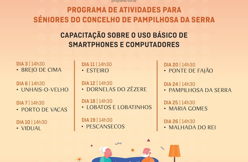 No mês de fevereiro, o programa Conversa de Avós regressa às aldeias do concelho com sessões de estimulação cognitiva e capacitação sobre o uso de smartphones e computadores! Se tem mais de 55 anos, consulte o calendário e venha sorrir, conviver, reviver e aprender.