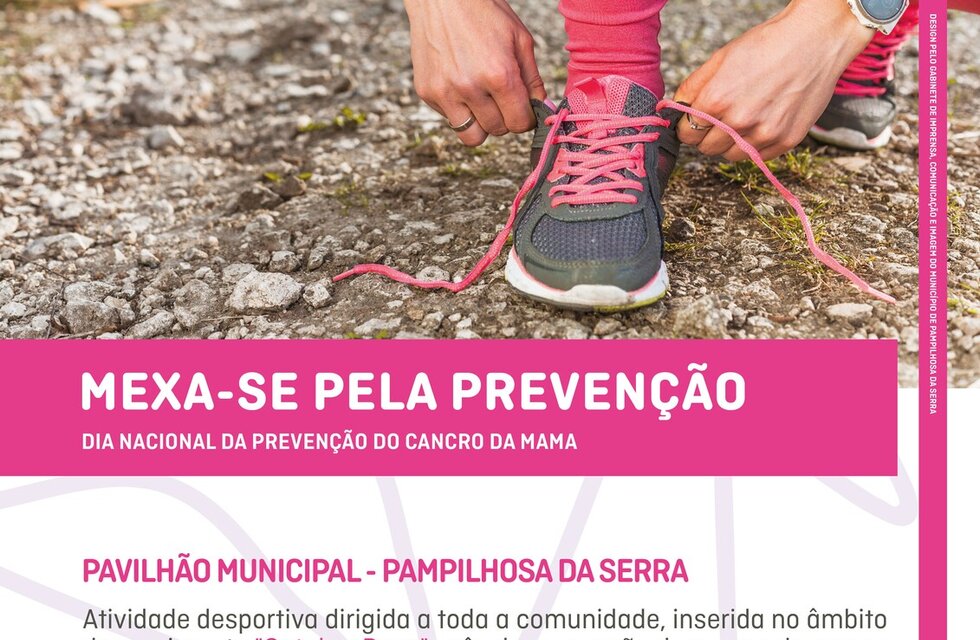 No âmbito do “Outubro Rosa”, mês de prevenção do cancro da mama, a Câmara Municipal de Pampilhosa da Serra, convida toda a comunidade a participar na atividade desportiva “Mexa-se pela Prevenção”, que decorrerá no dia 30 de outubro (segunda-feira), pelas 18h00, no Pavilhão Municipal.
