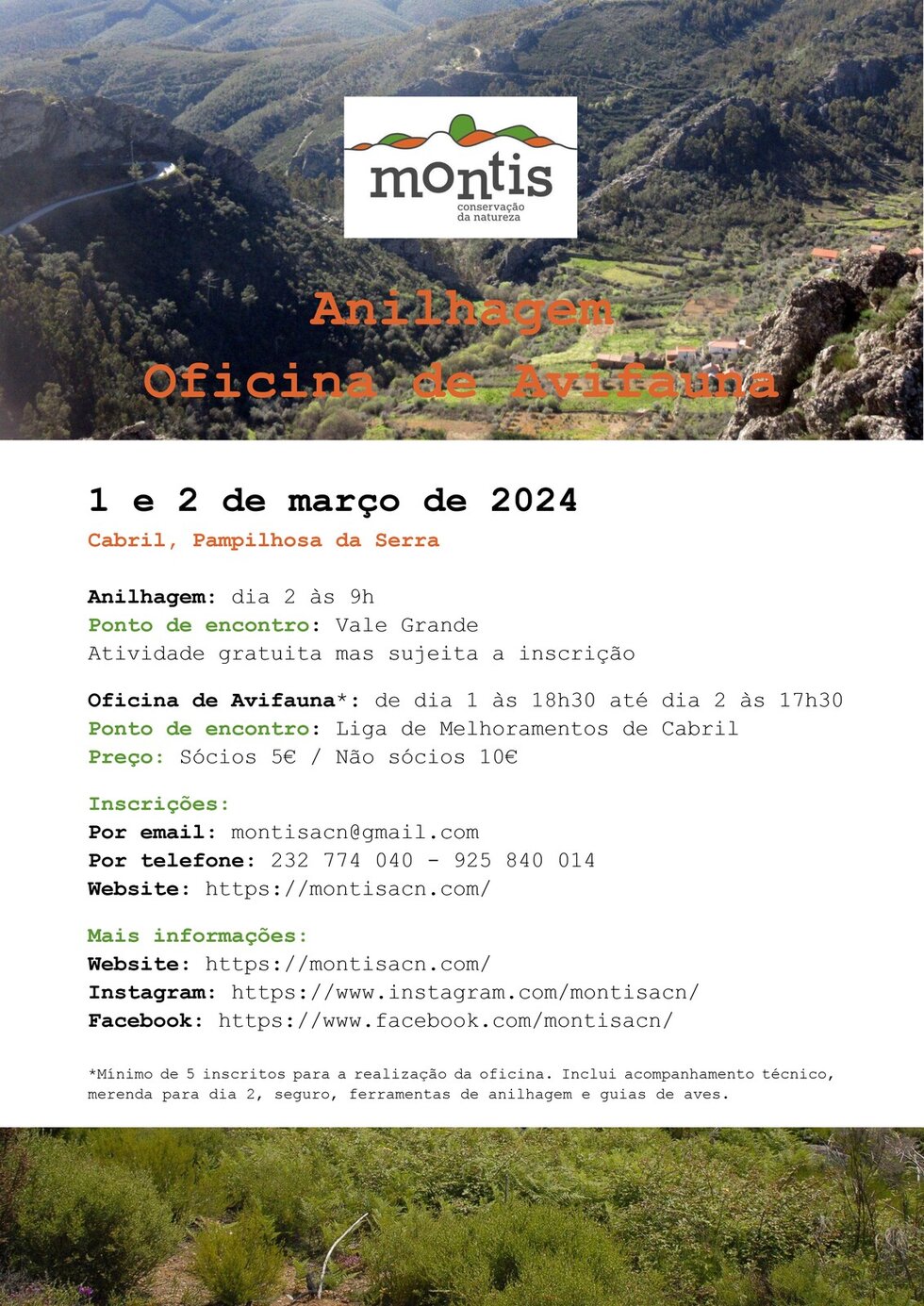 As inscrições estão abertas até às 12h do dia 28 de fevereiro (indicando: nome, contacto telefónico, data de nascimento e nº Cartão de Cidadão para efeitos do seguro), para o email montisacn@gmail.com ou por telefone: 232 774 040 / 925 840 014.