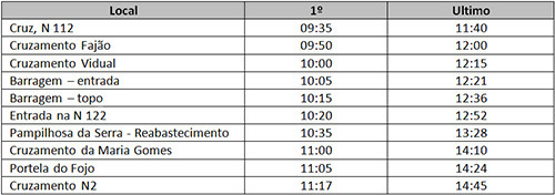 Horário de passagem: