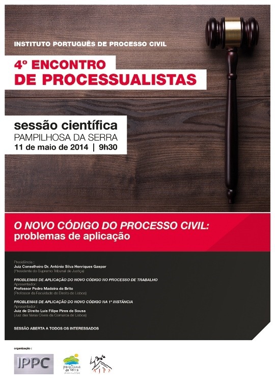Irá realizar-se no próximo dia 11 de maio, o 4º Encontro de Processualistas, um evento com a Organização do Instituto Português de Processo Civil em parceria com a Câmara Municipal de Pampilhosa da Serra e a Associação de Juristas de Pampilhosa da Serra.