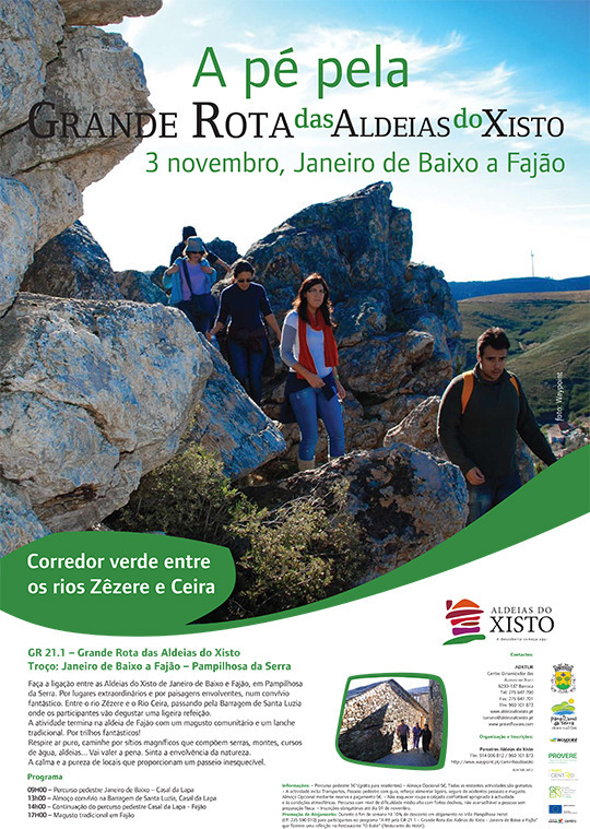 A atividade consistirá na realização do Percurso Pedestre da Grande Rota Aldeias do Xisto, no troço entre Janeiro de Baixo e Fajão, com paragem para reforço alimentar na Barragem de Santa Luzia.