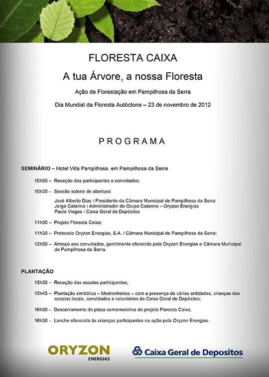 16h - Descerramento da placa comemorativa do Projecto Floresta Caixa na Pampilhosa da Serra;