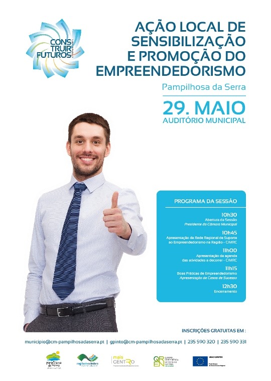 O Município de Pampilhosa da Serra promove, no próximo dia 29 de maio (quinta-feira), uma Ação Local de Sensibilização e Promoção do Empreendedorismo, que decorre no Auditório Municipal do Edifício Monsenhor Nunes Pereira, em Pampilhosa da Serra.