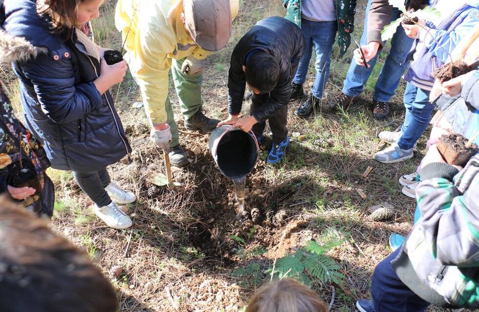 Inserida num projeto de sensibilização para riscos em vários ambientes, a atividade decorreu no Casal da Lapa, onde os alunos do 1º ciclo da Escola Básica D.Eurico Dias Nogueira tiveram oportunidade de criar um espaço de viveiro com plantação de espécies autóctones, nomeadamente o Carvalho-Negral (quercus pyrenaica) e o Carvalho-Alvarinho (quercus robur).