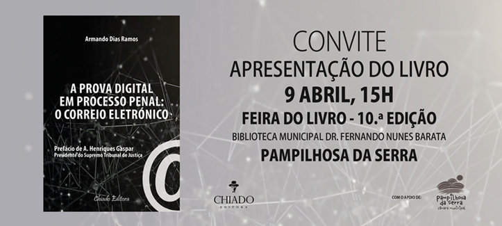 No próximo dia 9 de abril, pelas 15h00, realiza-se a sessão de apresentação dos livros: “A Prova Digital em Processo Penal: O Correio Eletrónico” de Armando Ramos e “O Vale da Tentação” de António Lopes.