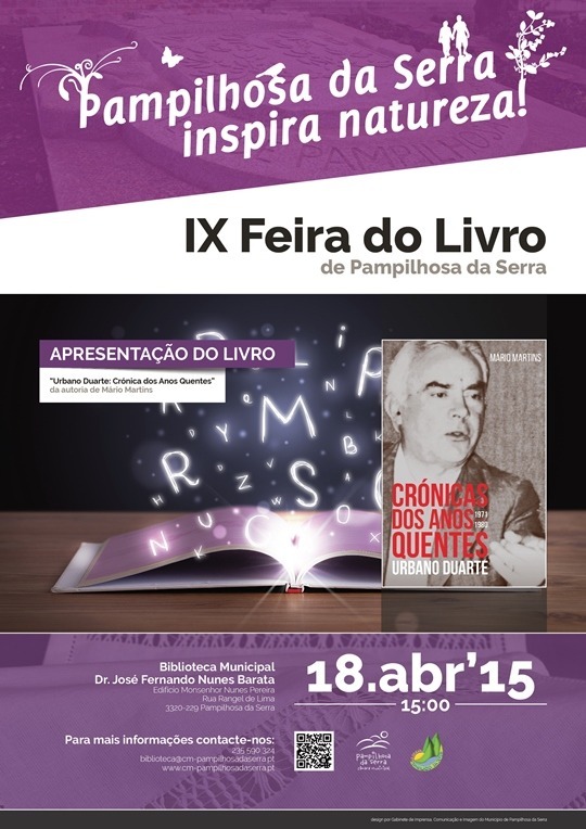 No próximo dia 18 de abril pelas 15h00, a Biblioteca Municipal Fernando Nunes Barata irá receber Mário Martins para a apresentação do seu livro "Urbano Duarte: Crónicas dos Anos Quentes". A sessão de apresentação terá como orador o Prof. José Ramos Mendes.