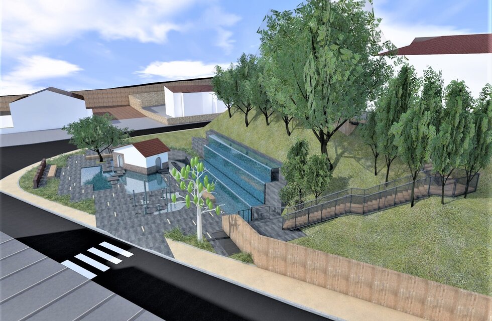 Nesse sentido, está prevista a criação de uma cascata com 3 plataformas e de um “espelho de água”, na parte inferior, que apresentará um “desenho irregular”, gerando percursos e zonas de estar distintas.