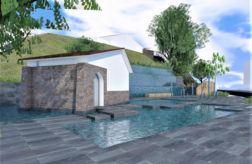 A requalificação dessa “casa”, atualmente sem utilização, é uma das faces da intervenção que já está em curso. Com inspiração no Rio Unhais, o projeto, da autoria da empresa Inline Engenharia, Lda., apresenta um elemento marcante e gerador de todo o conceito: a água.