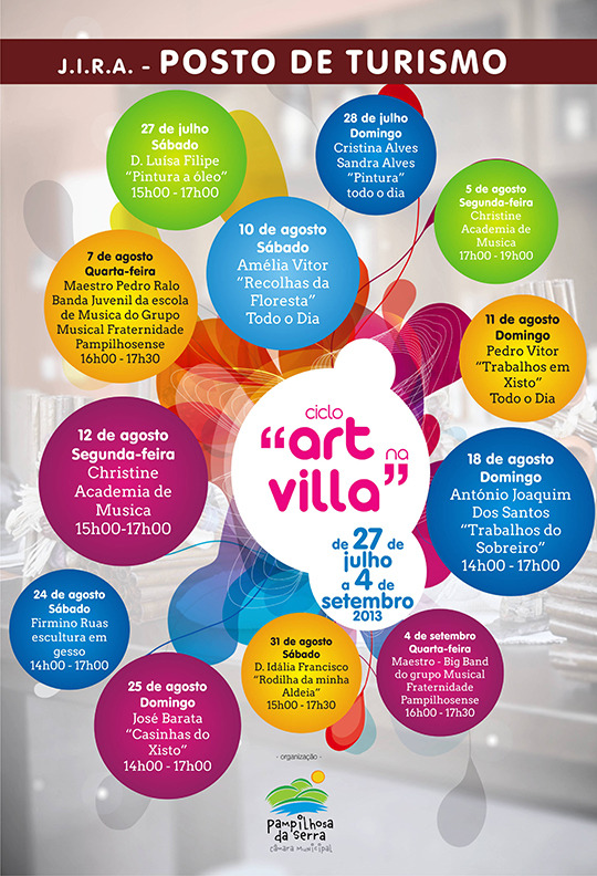 Pelo segundo ano consecutivo, o Município de Pampilhosa da Serra promove em colaboração com artistas, artesãos e jovens locais, o ciclo "Art na Villa". Este ciclo decorre no Posto de Turismo de Pampilhosa da Serra, entre os dias 27 de julho e 4 de setembro.