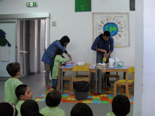 Nesta atividade as crianças participaram de forma ativa na confeção de um bolo. Depois de feita a apresentação dos ingredientes, ficou tudo a postos para o início de uma aventura de culinária: farinha, açúcar, óleo, chocolate, leite e boa disposição deram como resultado um bolo de chocolate que fez as delícias dos pequenos cozinheiros! Participaram nesta atividade 12 crianças com idades compreendidas entre os 3 e os 6 anos.