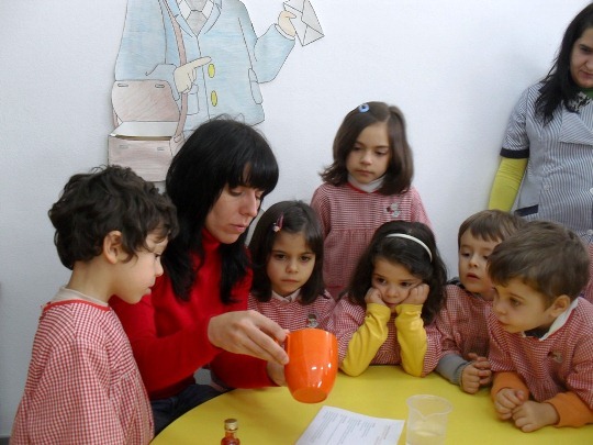 Nesta atividade as crianças foram "cientistas de palmo e meio", participando de forma ativa e ajudando na realização de várias experiências.