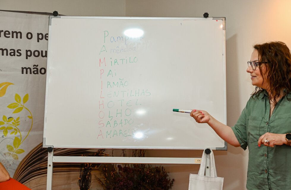 Dinamizado no âmbito da XIV Feira do Livro de Pampilhosa da Serra, a sessão decorreu na Biblioteca Municipal e teve como destaque a criação de um acróstico coletivo, com palavras escolhidas e construídas em grupo, a partir do vocabulário já aprendido nas aulas.