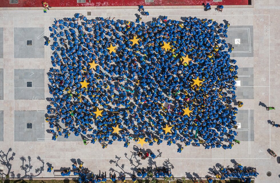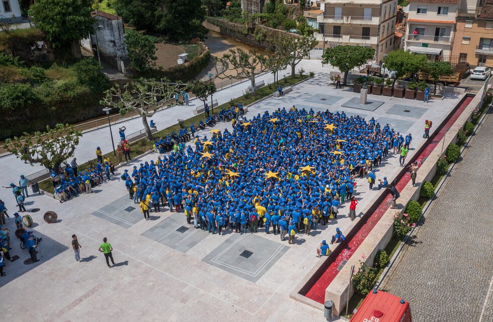 Depois da calorosa sessão de boas-vindas no Mercado Municipal, marcada por um brinde conjunto que abriu as festividades, seguiu-se uma arruada até ao Largo José Henriques da Cunha, onde se formou uma bandeira humana da Europa com a participação de todos os grupos presentes, numa celebração criativa e inclusiva do Dia da Europa, assinalado a 9 de maio.