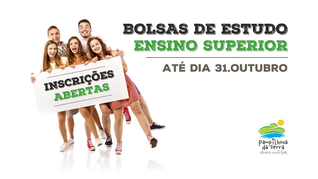 Na sequência do Regulamento Municipal para atribuição de Bolsas de Estudo a alunos do Concelho de Pampilhosa da Serra que ingressam no Ensino Superior, informamos que se encontra aberto o período de candidaturas, que decorrerá entre 3 e 31 de outubro de 2016.