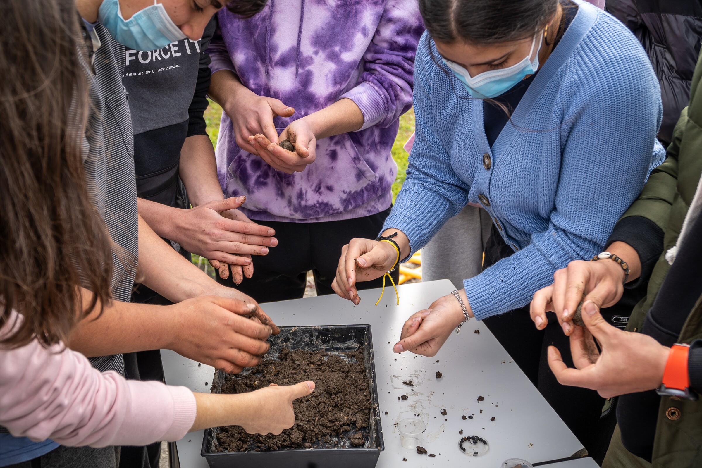 Por outro lado, a atividade “Bombas de Sementes”, procurou alertar para os problemas causados pelas plantas invasoras e para a importância de proteger e criar bosques compostos por espécies nativas. Em simultâneo, esta ação visou contribuir para mitigar a necessidade imperiosa de aumentar o número de espécies nativas no território, de forma pouco dispendiosa e com baixa necessidade de manutenção, mas com capacidade para gerar entusiasmo no envolvimento da comunidade escolar. Após o arremesso de algumas bombas de sementes no interior do recinto escolar (com o objetivo de monitorizar a germinação), o grupo foi convidado a participar numa pequena caminhada ao longo das margens do Rio Unhais, para observar e replicar técnicas de controlo de plantas invasoras e, claro está, arremessar bombas de sementes nos locais mais adequados para o efeito.