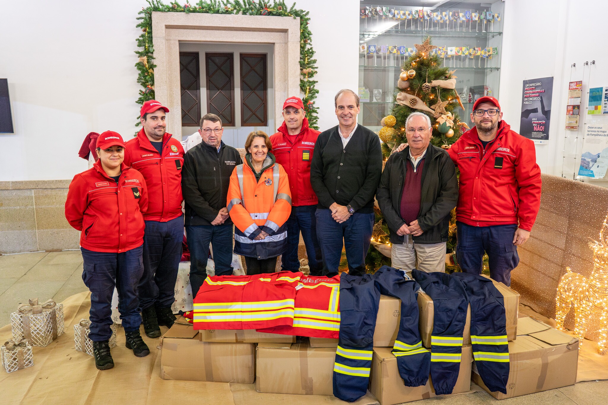 Ontem, dia 18 de novembro, foram entregues 66 kits de Equipamentos de Proteção Individual (EIP) aos Bombeiros Voluntários de Pampilhosa da Serra, num momento simbólico que contou com a presença do presidente da Câmara Municipal, Jorge Custódio, da coordenadora municipal de Proteção Civil, Anabela Martins, do comandante dos Bombeiros Voluntários, Luis Almeida, bem como de dirigentes e colaboradores dos bombeiros e da autarquia.
