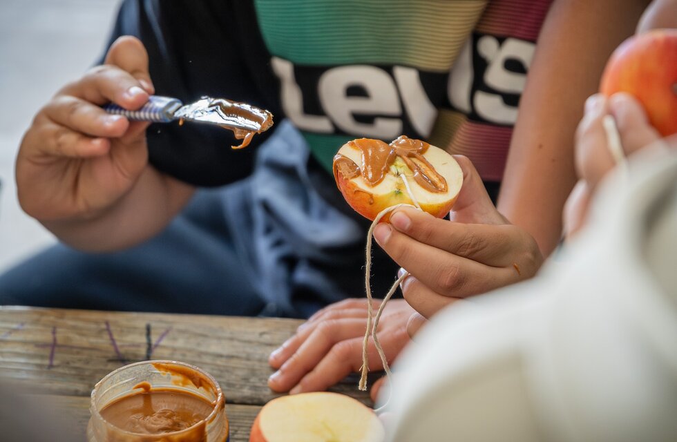 Utilizando uma das técnicas mais fáceis (e certamente mais saborosas), os alimentadores foram criados com recurso a fatias de maçã, untadas com manteiga de amendoim e polvilhadas com vários tipos de sementes que, posteriormente, foram penduradas nos ramos de árvores.