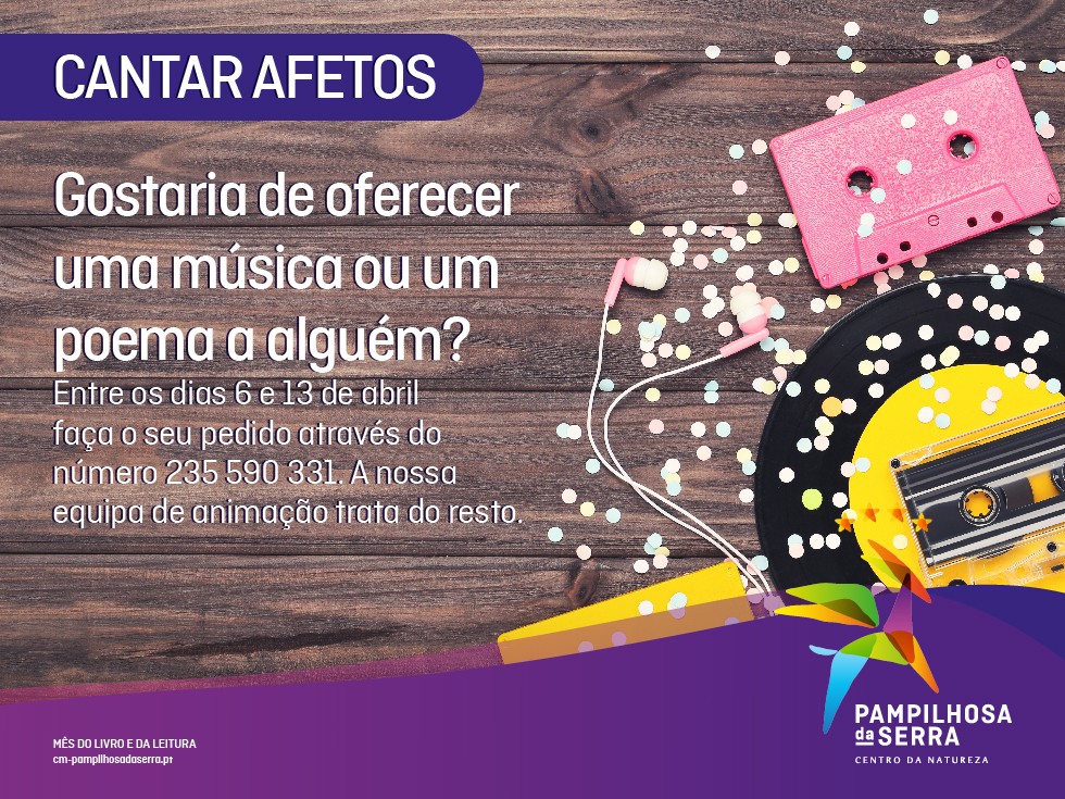 Até ao dia 13 de abril, poderá ligar para o número 235 590 331, das 09h00 às 17h30, e dedicar uma música ou poema a uma pessoa que resida no concelho. Após o seu contacto, o pedido será agendado e posteriormente realizado entre os dias 14 de abril e 14 de maio, período em que uma equipa de animação, composta por técnicos do município, se deslocará aos respetivos domicílios para “distribuir” e “cantar afetos”.