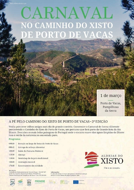 A Comissão de Melhoramentos de Porto de Vacas, em parceria com a Câmara Municipal de Pampilhosa da Serra, a Junta de Freguesia de Janeiro de Baixo e a ADXTUR, promovem a 3º Edição do Carnaval pelos Caminhos de Xisto de Porto de Vacas, um dos seis inseridos na Rede de Percursos Pedestres do Concelho de Pampilhosa da Serra.