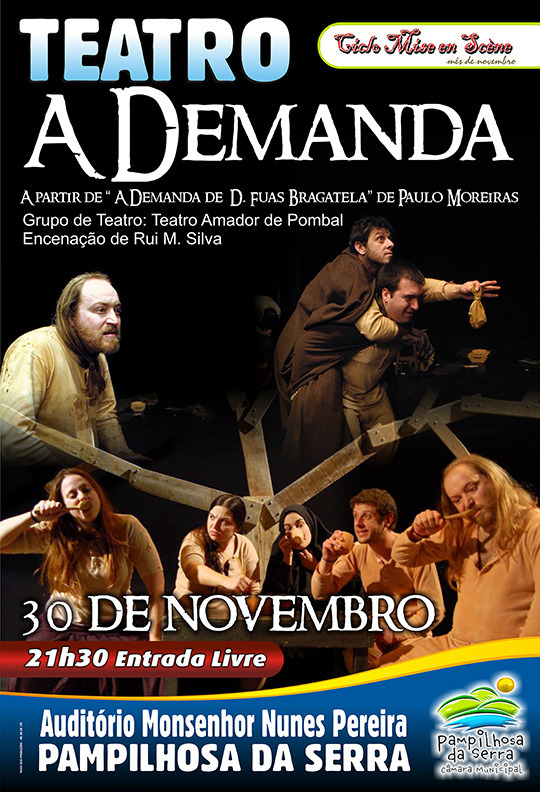 No próximo dia 30 de novembro, pelas 21h30 sobe ao palco do Auditório Municipal a peça de teatro "A Demanda", uma produção do Grupo de Teatro Amador de Pombal, com encenação de Rui M. Silva.