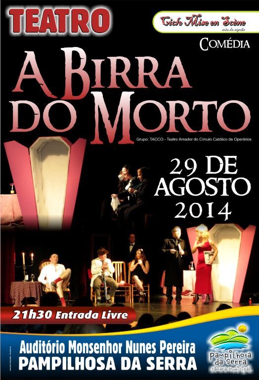 Inserido no Ciclo Mise en Scène, promovido pelo Município de Pampilhosa da Serra, sobe ao palco do Auditório Municipal no próximo dia 29 de agosto a comédia "A Birra do Morto", uma produção do TACCO - Teatro Amador Circulo Católico de Operários.