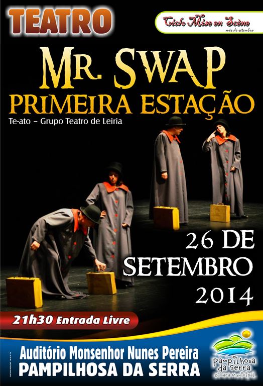 No âmbito do Ciclo de Teatro Mise en Scène, sobe ao palco do Auditório Municipal de Pampilhosa da Serra, no próximo dia 26 de setembro, pelas 21h30m, a peça de teatro "Mr. Swap - primeira estação", uma produção do TE-ATRO (Grupo Teatro Leiria).