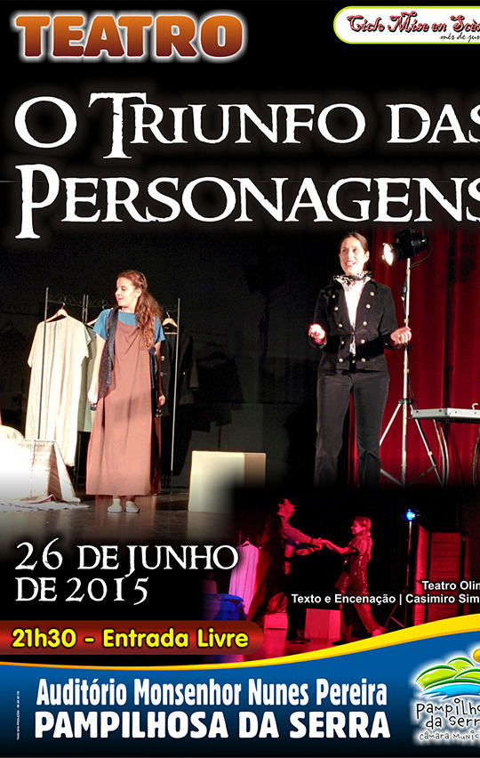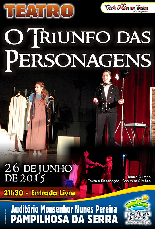 No próximo dia 26 de junho, pelas 21h30, o Teatro Olimpo apresenta a peça "O Triunfo das Personagens" no Auditório Monsenhor Nunes Pereira.