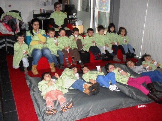 Durante a atividade foi recriado o ambiente de uma sala de cinema, com pipocas que fizeram as delícias dos mais novos.