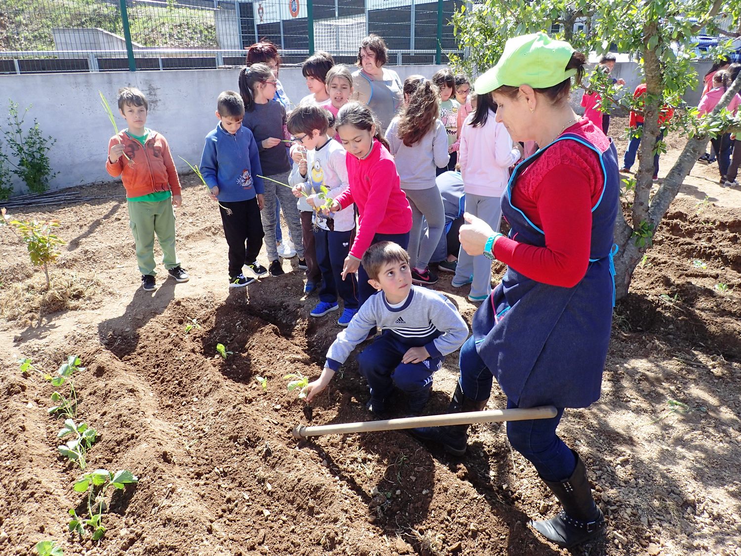 Nesta atividade, que teve como objetivo promover hábitos alimentares saudáveis e fomentar o contacto com a agricultura biológica, os alunos plantaram morangos, cebolas, alho francês, cenouras, curgetes, brócolos, alfaces, beringelas, nabos, couves e tomates. Na próxima atividade serão plantados outros legumes e ervas aromáticas.