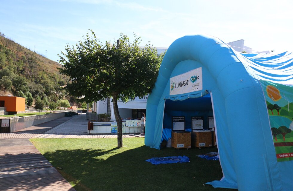 A tenda expositiva do projeto ClimAgir esteve hoje, dia 11, na Praia Fluvial de Pampilhosa da Serra, para levar a cabo a última “Ação Praia” da presente época balnear, depois de ter passado por 12 municípios da Região de Coimbra.