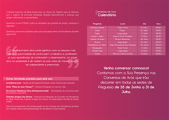 No âmbito da comemoração do Ano Europeu do Envelhecimento Ativo e Solidariedade entre Gerações, foi criado um grupo de trabalho constituído pelo Núcleo Executivo da Rede Social em conjunto com outras entidades locais e cidadãos Pampilhosenses.