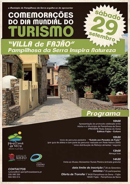 No dia 29 de setembro, na aldeia do xisto de Fajão decorrerá "A Villa de Fajão - Pampilhosa da Serra: Inspira Natureza" que inclui apresentação de ações a implementar no âmbito do protocolo celebrado entre este Município e a Adxtur, enquadradas no "PROVERE Aldeias do Xisto" e ainda a realização do Caminho do Xisto de Fajão - "PR1 - Subida aos Penedos", com guia local.
